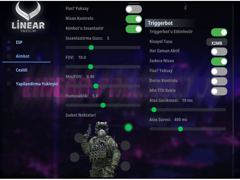 VAC Sisteminin tespit edemediği sayılı yazılımlardan olan Linear Premium ile güvende kalabilirsiniz. Oyuna veri yazmadan en bol özellikler ile oyun keyfi.